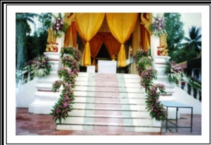 พวงมาลัยสด พวงมาลัยแก้บน พวงมาลัยแห้งทุกชนิด รับทำบายศรีทุกรูปแบบ พวงมาลัยคล้องนาค พวงมาลัยแต่งงาน ขันรดน้ำสังข์ ซุ้มดอกไม้งานแต่งงาน รับจัดช่อดอกไม้สด รับจัดดอกไม้หน้าศพ ดอกไม้งานศพ รับทำพวงหรีด เครื่องตั้งศาลพระภูมิ และเครื่องสังฆภัณฑ์ จำหน่ายในราคาพิเศษ รับจัดดอกไม้ในงานพิธีต่างๆ นอกสถานที่