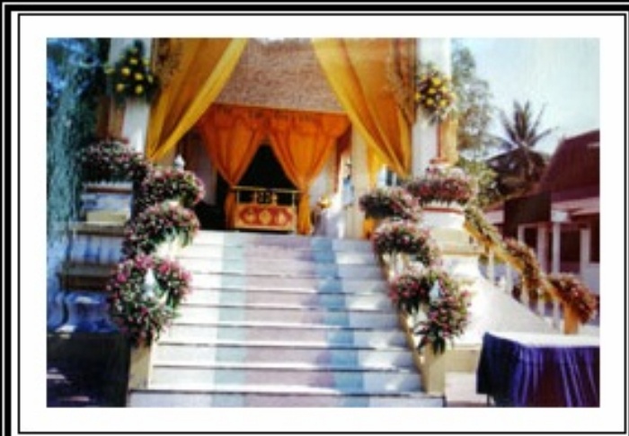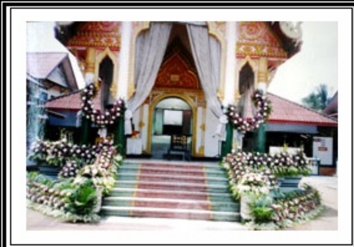 พวงมาลัยสด พวงมาลัยแก้บน พวงมาลัยแห้งทุกชนิด รับทำบายศรีทุกรูปแบบ พวงมาลัยคล้องนาค พวงมาลัยแต่งงาน ขันรดน้ำสังข์ ซุ้มดอกไม้งานแต่งงาน รับจัดช่อดอกไม้สด รับจัดดอกไม้หน้าศพ ดอกไม้งานศพ รับทำพวงหรีด เครื่องตั้งศาลพระภูมิ และเครื่องสังฆภัณฑ์ จำหน่ายในราคาพิเศษ รับจัดดอกไม้ในงานพิธีต่างๆ นอกสถานที่